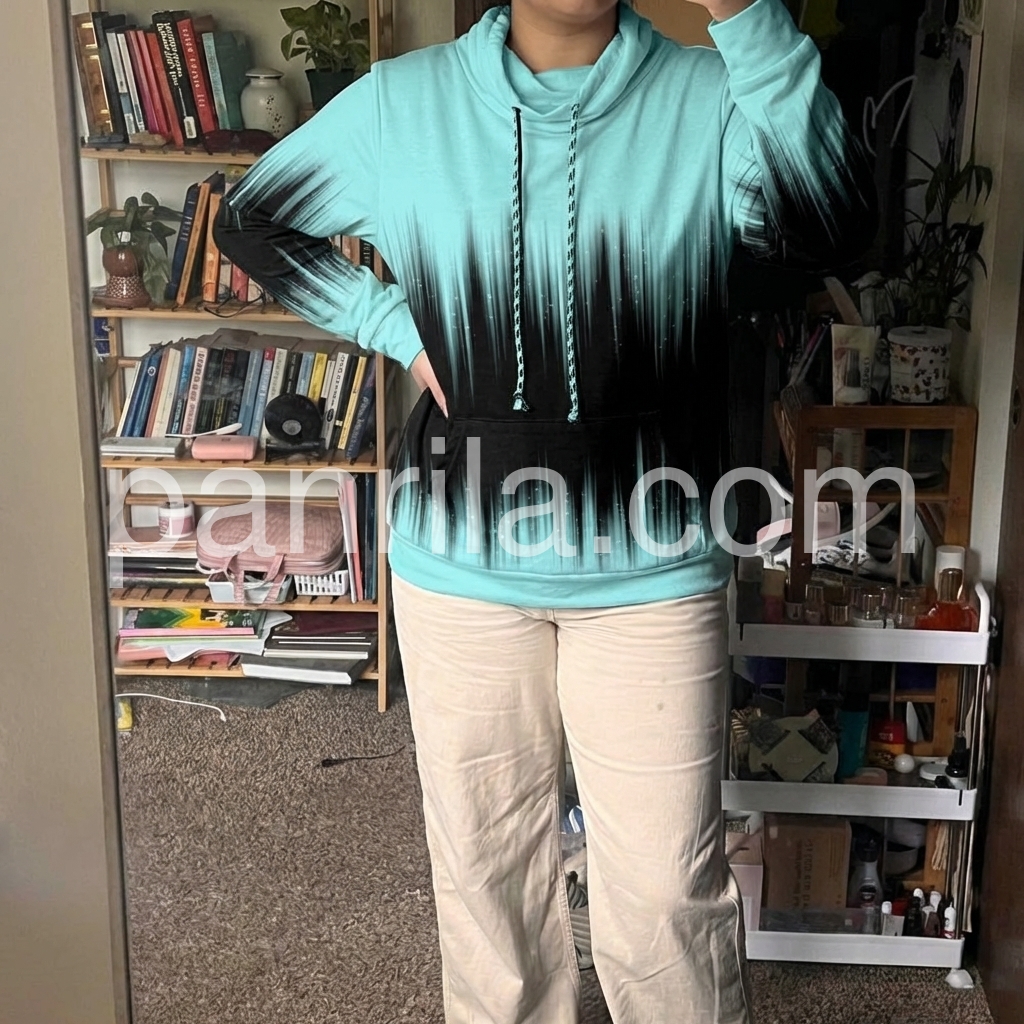 Aqua & Black Ombre Rain Hoodie Drawstring Sweatshirt