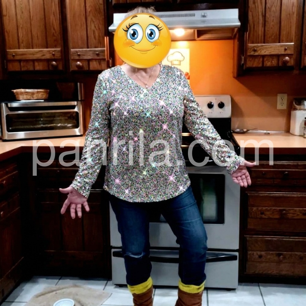 Disco Ball Tinsel Metallic Print Long Sleeve Top