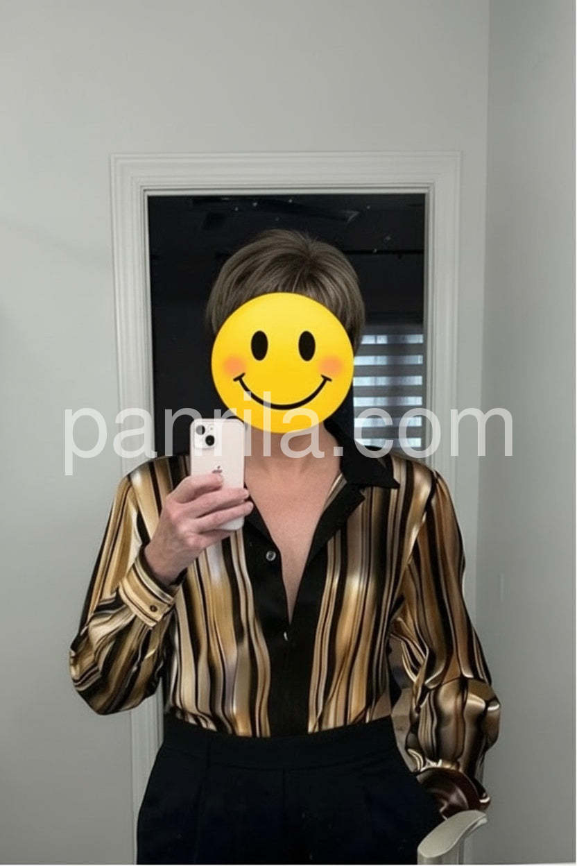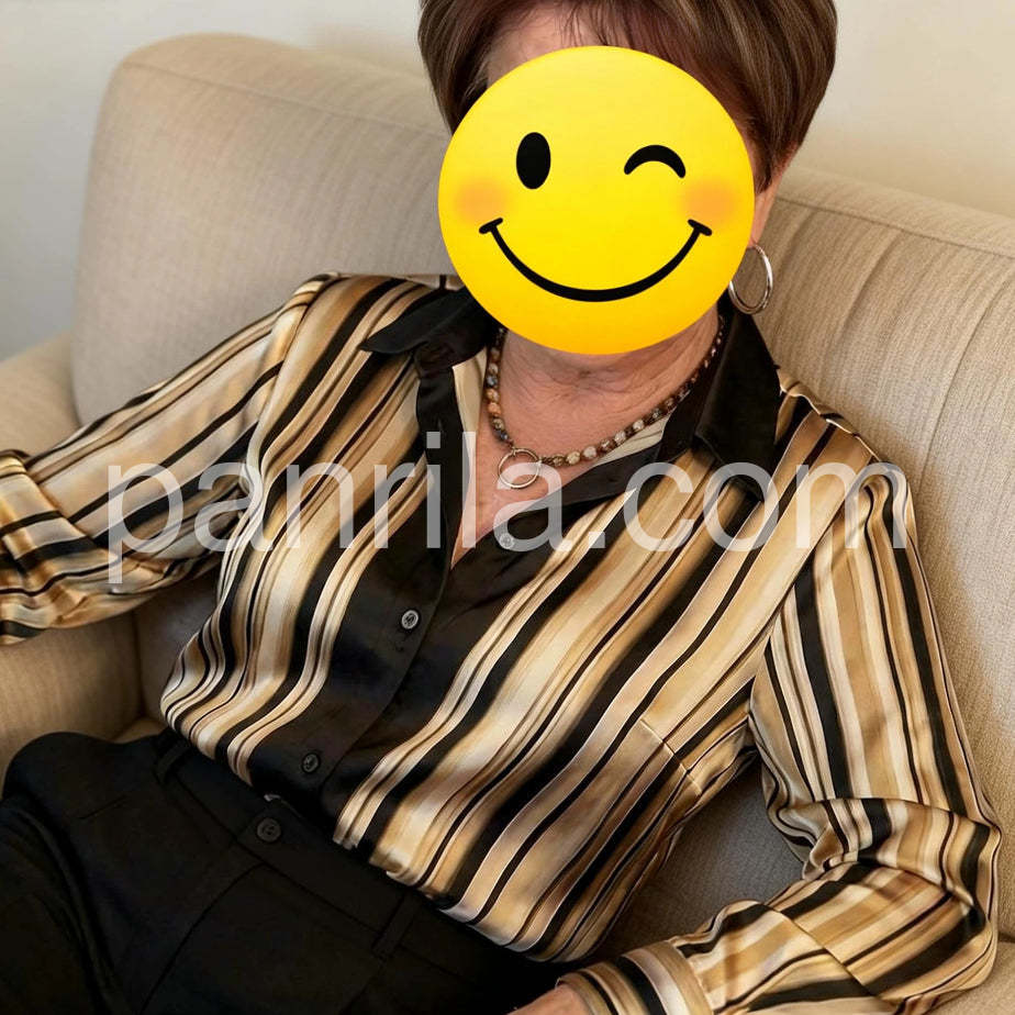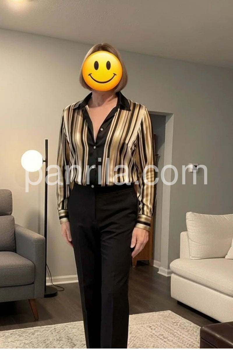 Elevate your wardrobe with this sophisticated striped satin blouse, crafted from luxurious fabric that drapes beautifully against the skin. The classic button-down silhouette offers timeless versatility, seamlessly transitioning from professional settings to evening occasions. Subtle stripes add visual interest without overwhelming your look, while the satin finish delivers an understated elegance. Perfect for layering or wearing solo, this piece pairs effortlessly with tailored trousers, skirts, or denim for a polished appearance that works season after season.