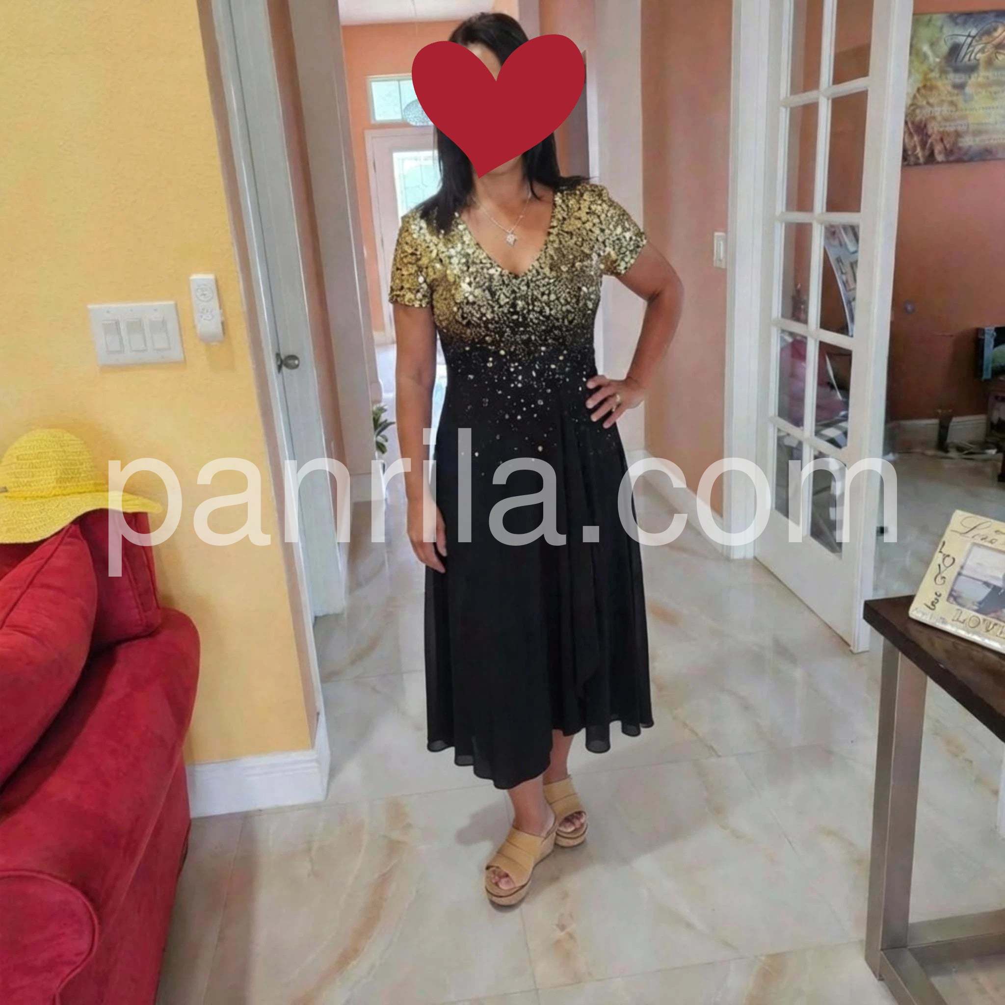 This elegant V-neck midi dress combines sophisticated design with practical comfort. The short sleeves offer versatility for various occasions, while the flattering V-neckline enhances your neckline. The midi length provides a balanced silhouette suitable for both professional settings and social gatherings. Crafted with attention to detail, this stunning dress will become a cornerstone piece in your wardrobe rotation.
