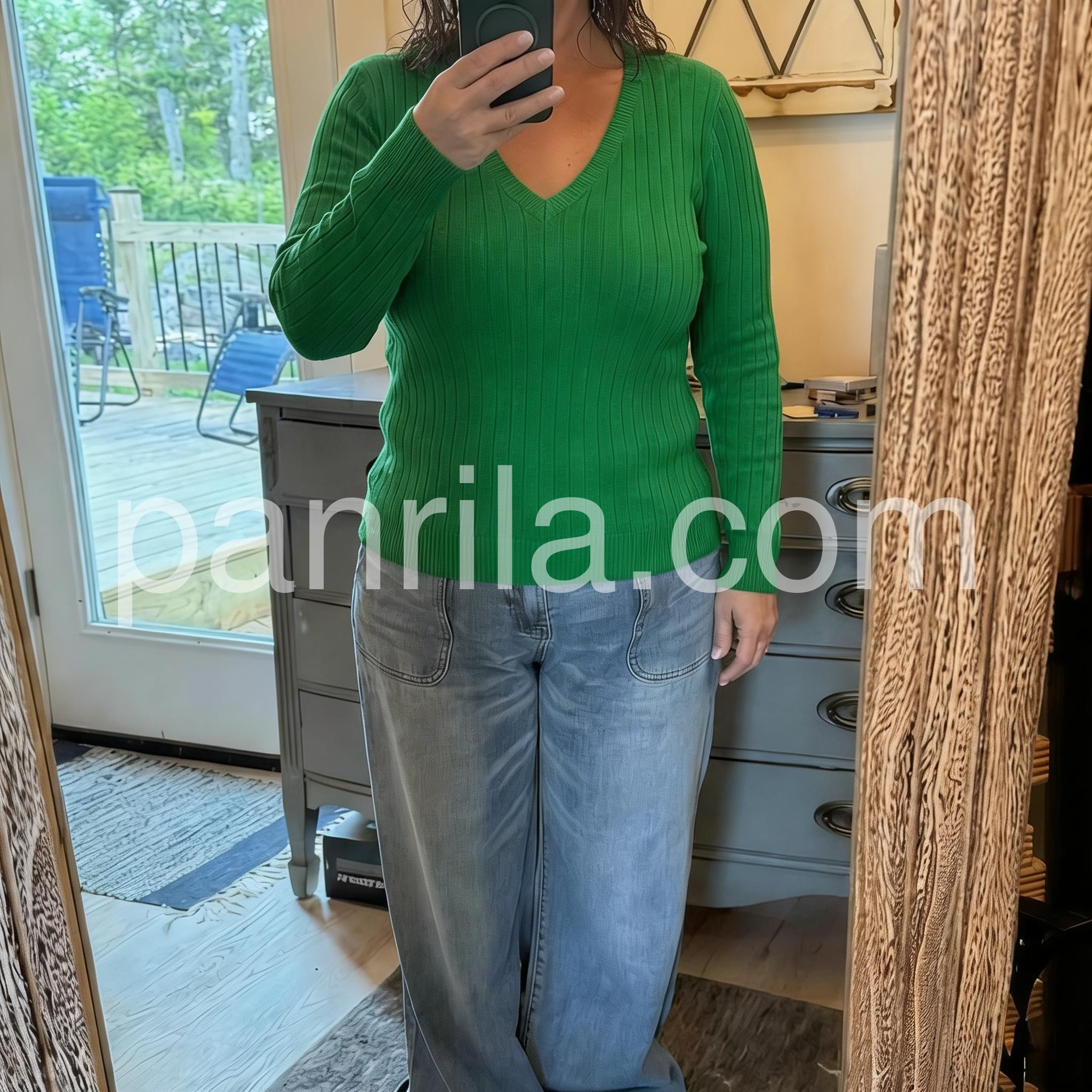 - Neckline: V-Neck