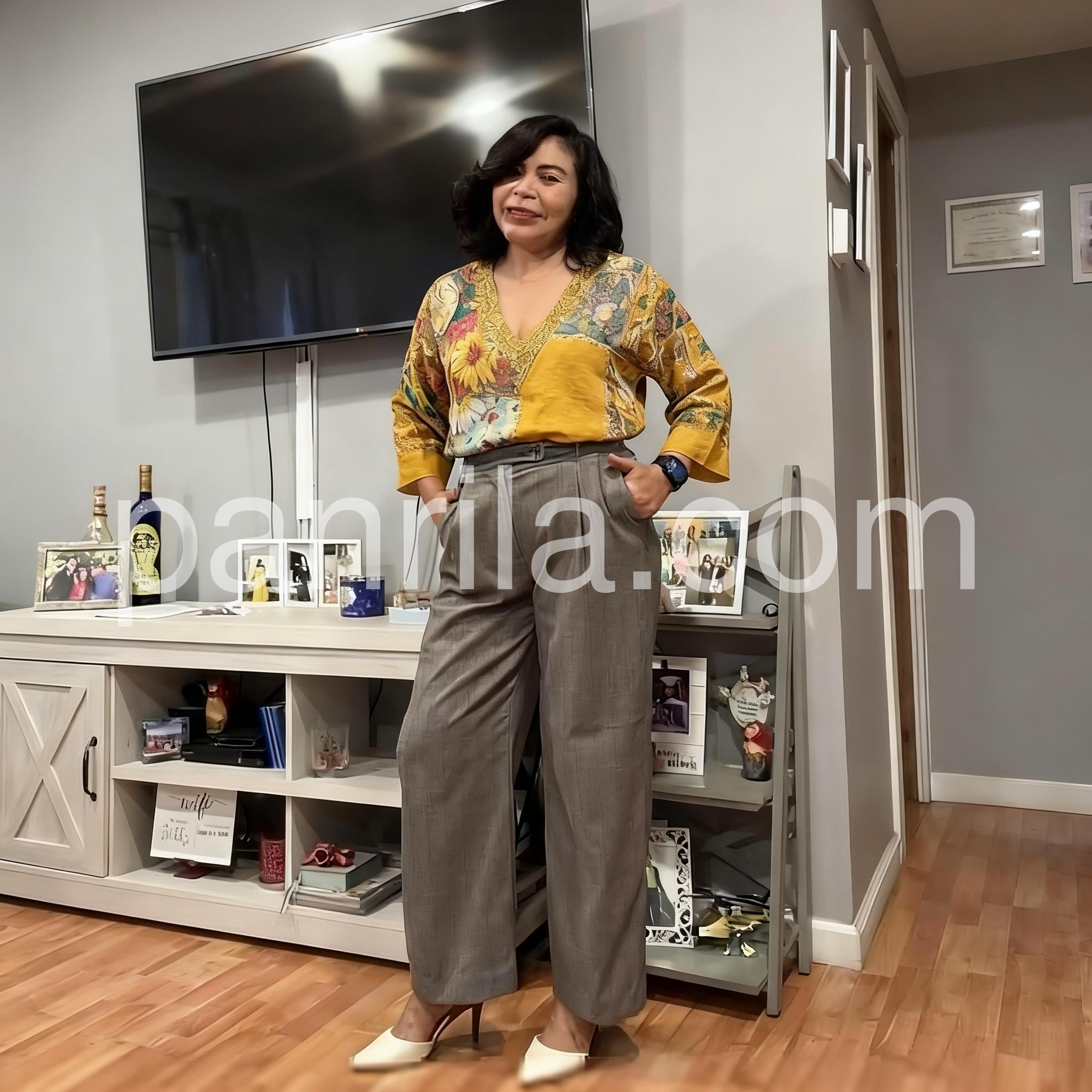 - Neckline: V-neck