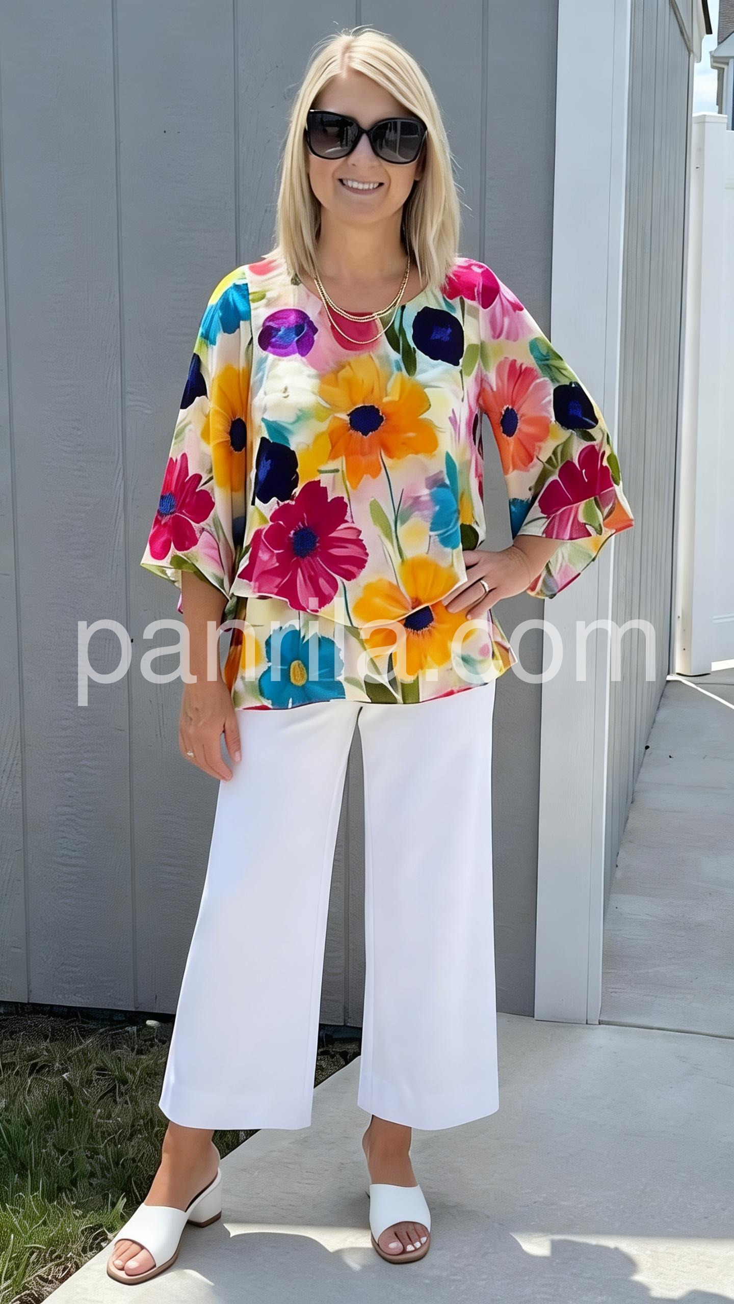 This coordinated set features a relaxed V-neck top and wide-leg cropped pants in classic blue and white stripes. The long sleeves with decorative side buttons add a stylish detail. Lightweight fabric perfect for warm weather. Ideal for casual outings or smart-casual events. Effortlessly elegant and easy to wear.