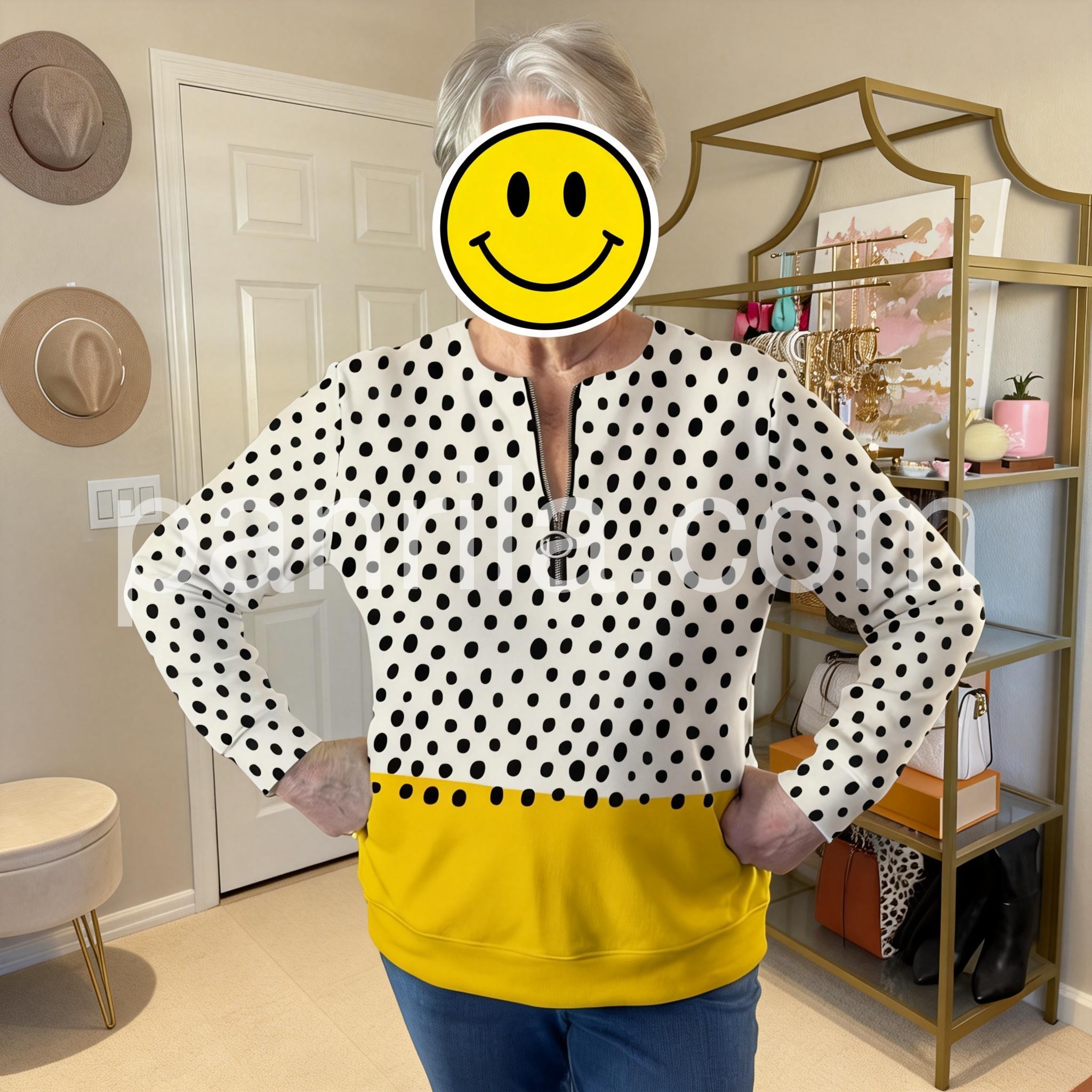 Elevate your wardrobe with this Chic Polka Dot Long Sleeve Top, designed for a refined yet playful look. Crafted with attention to detail, its timeless polka dot pattern pairs effortlessly with both casual and formal outfits. The long sleeves provide comfortable coverage, making it ideal for transitional weather or layering. This top combines classic style with versatile wearability, perfect for those seeking a polished and sophisticated addition to their collection.