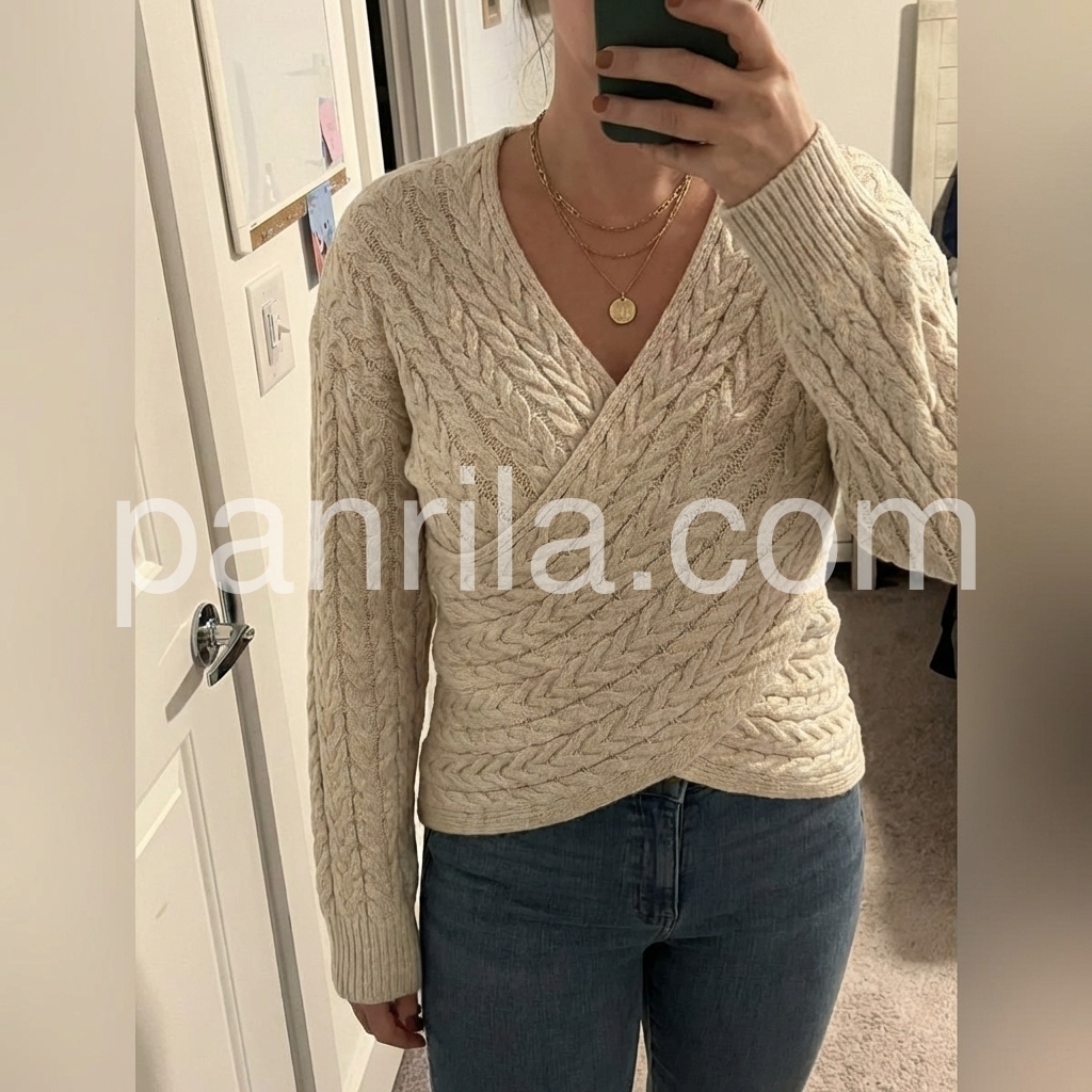 This apricot plain v-neck long sleeve sweater is a versatile addition to any wardrobe. Made with high-quality material, it offers both comfort and style. With its classic v-neck design and long sleeves, it can easily be dressed up or down for any occasion. Stay warm and elegant with this must-have piece.